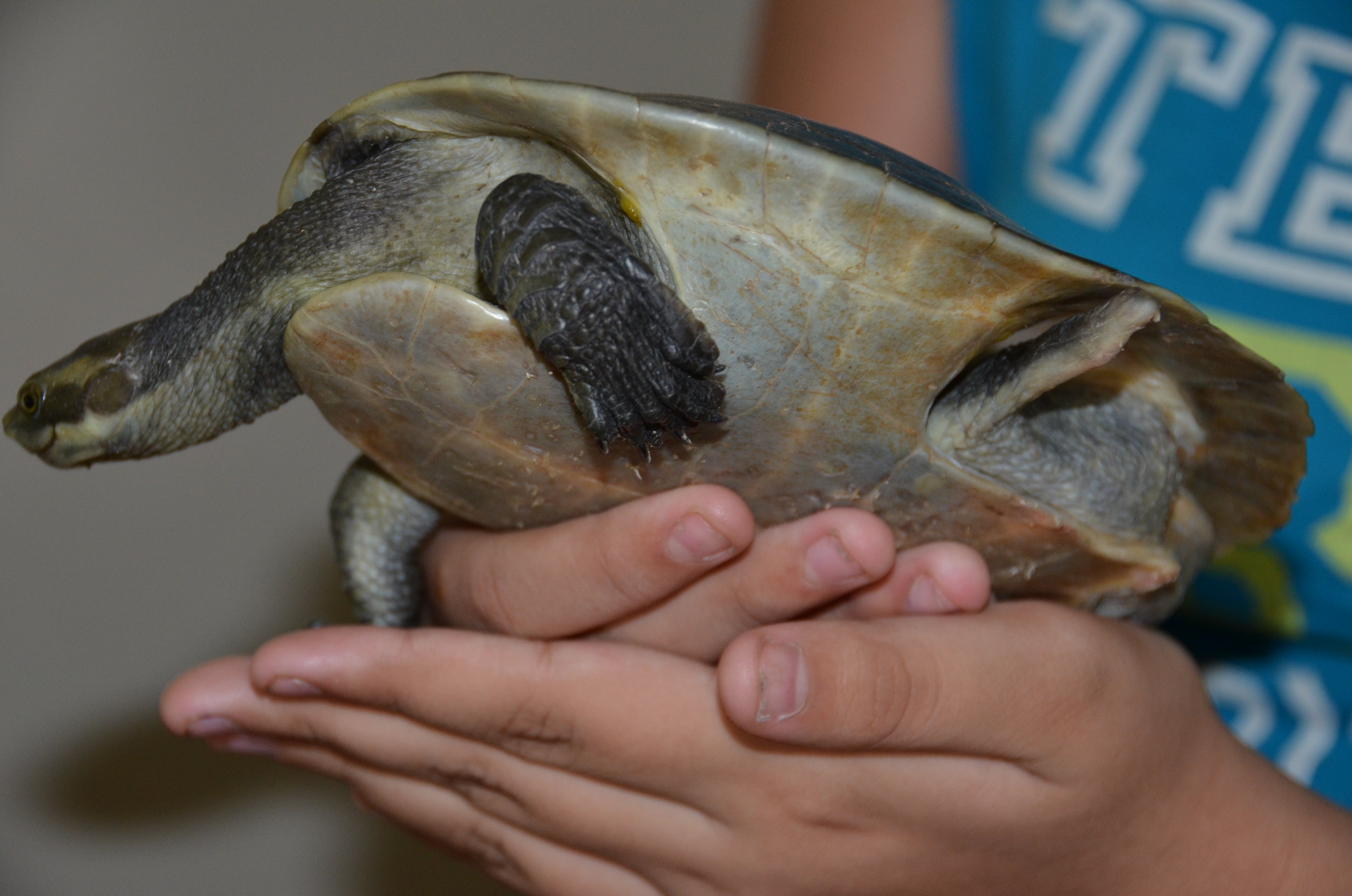 She put her head around the corner, and in her hands was a turtle.