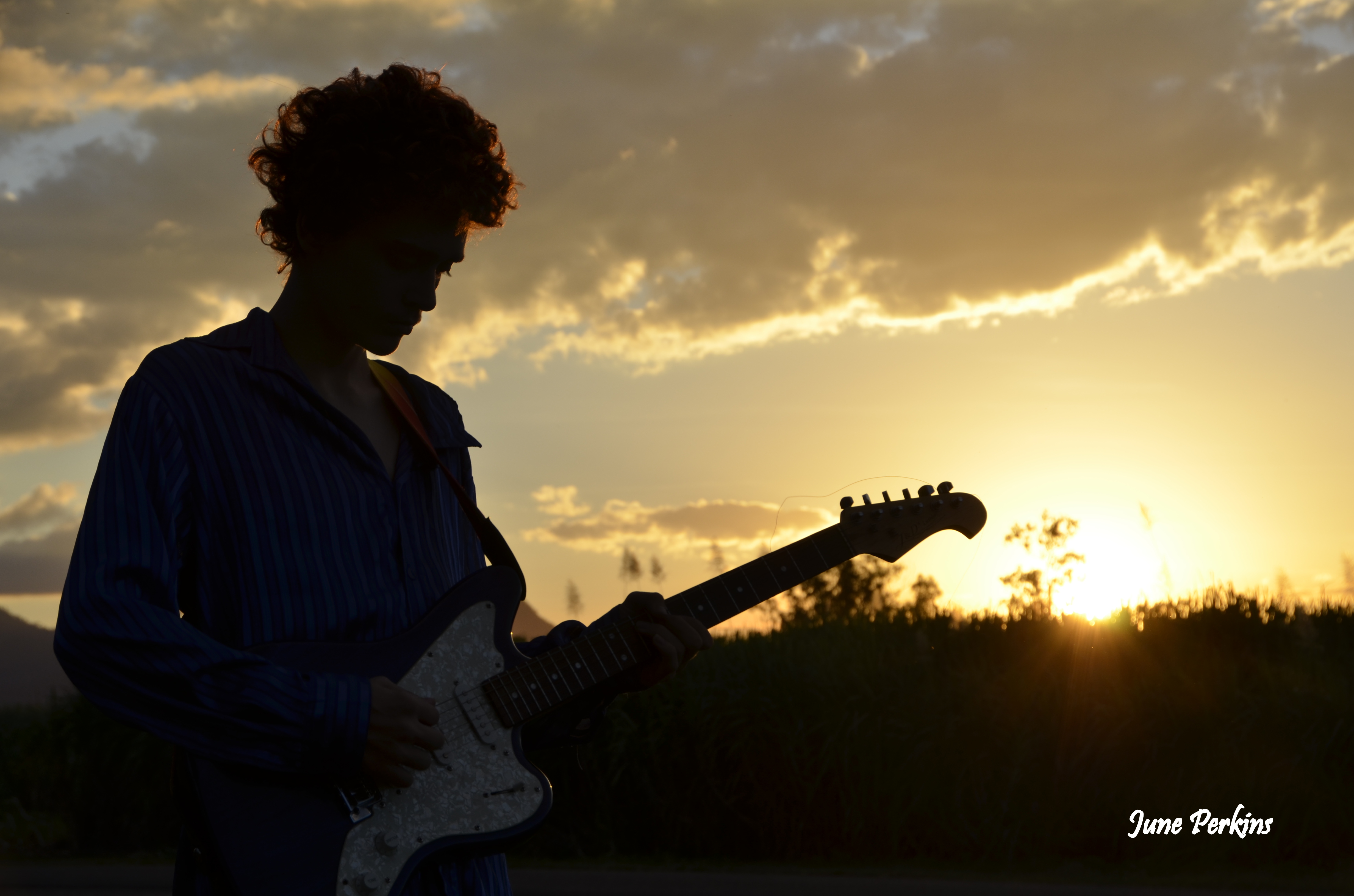 We’ve had some brilliant sunsets, and they have inspired me to take portraits of my eldest son playing his guitar with the back drop of it, and to do studies of cane, clouds, and sunsets.
