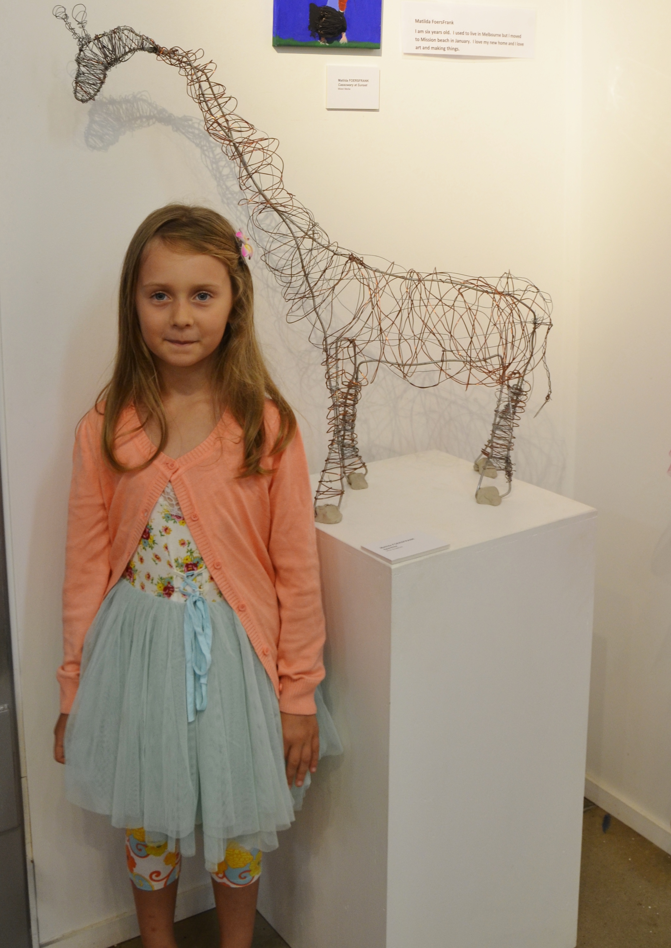 Another school holidays workshop with Sally Moroney led to the inclusion of a wire sculpture of a giraffe made by Matilda, a six year old artist, who recently moved from Victoria to the area with her family. Sally holds regular workshops for budding artists of the area and encourages them with their work. She held a preliminary meeting to encourage their participation in the project. They then put the word out to their friends as well.