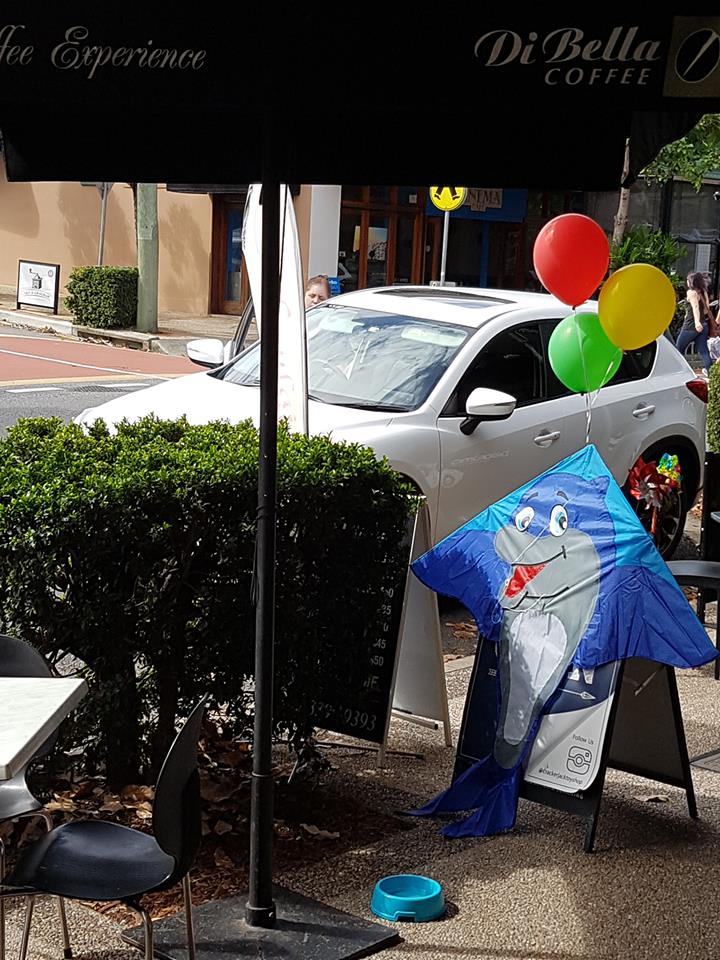 shops trying to attract you with kites and balloons.