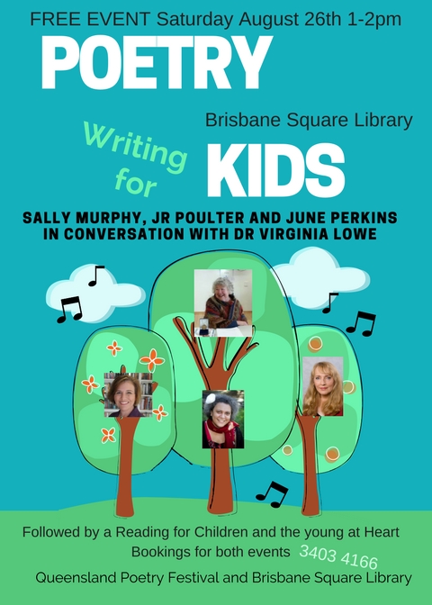 The Week of the Queensland Poetry Festival is finally here. If you are attending the poetry for kids discussion panel at the Brisbane Square Library do book with the library. The panel is followed by a reading for children at 2pm and while it is free it is a good idea to book. See you there if you make it, and don’t forget to say hello!