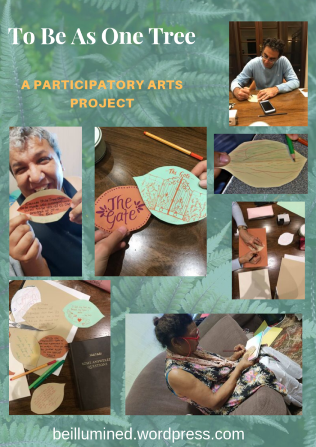 Three creatives, June (poet and author), Kalen (collage and mixed media, painting) and Sheridan (digital and visual arts) conceived an idea to contruct a paper/ sculpture to represent the unity of humanity and to explore the metaphors of trees in the Baha’i Writings.