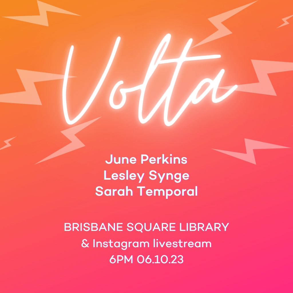 Sarah Temporal lives and works on Bundjalung lands: a poet, educator, and producer. She explores embodiment and storytelling in her debut collection ‘Tight Bindings’, forthcoming from Puncher and Wattmann. Sarah is a three-times finalist of the XYZ Prize for Excellence in Spoken-Word, with works published in Best of Australian Poems, Cordite, APJ and more.