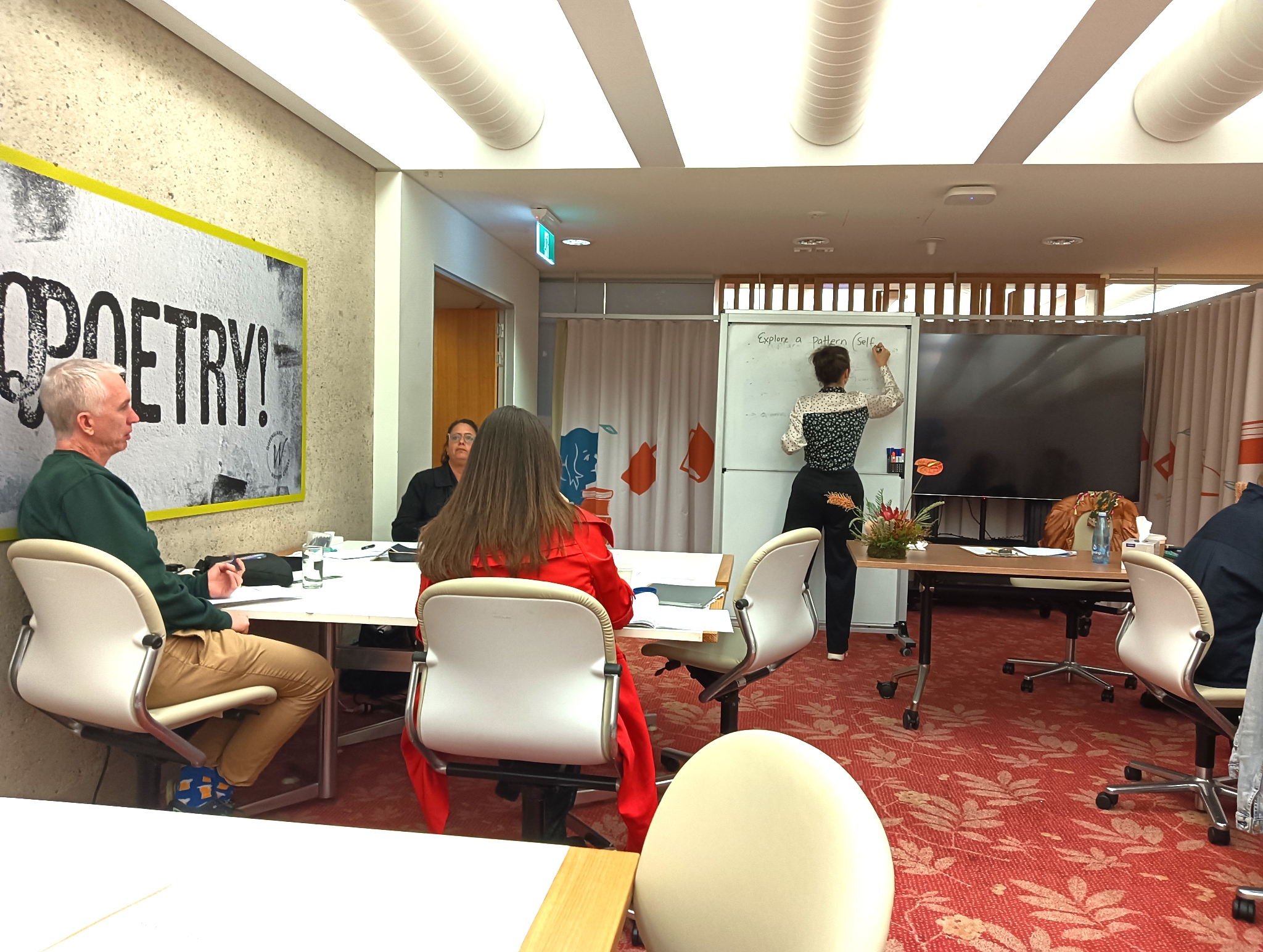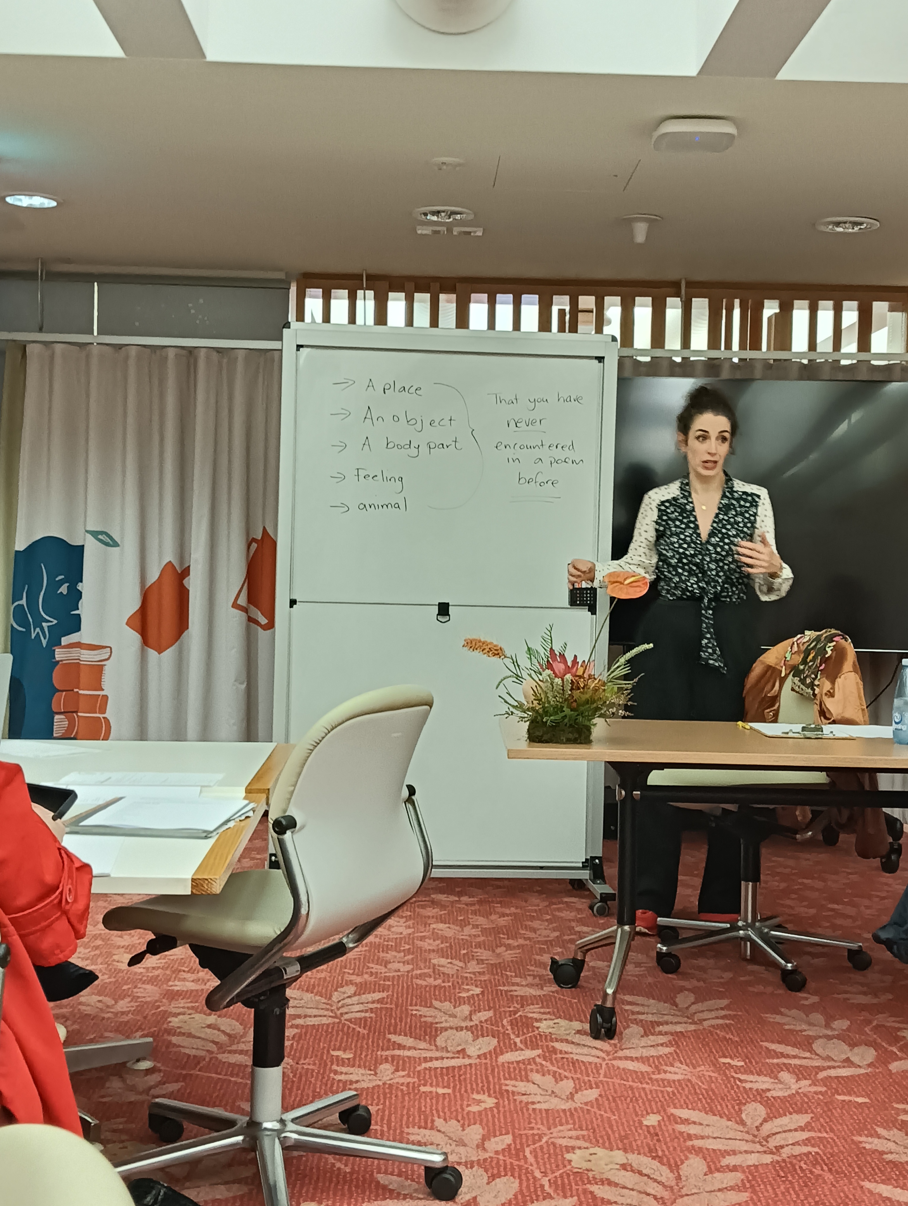 She gave us highly interesting prompts which were often reading poets and reflecting on their work, in discussion and turning to actions like thinking of potentials of things that don’t have many poems about them or something that frustrated us – that cause tension with others. I’ve made note of these and can come back to them in the future. She encouraged us to be brave, creative, and dig deeply if we wanted to.