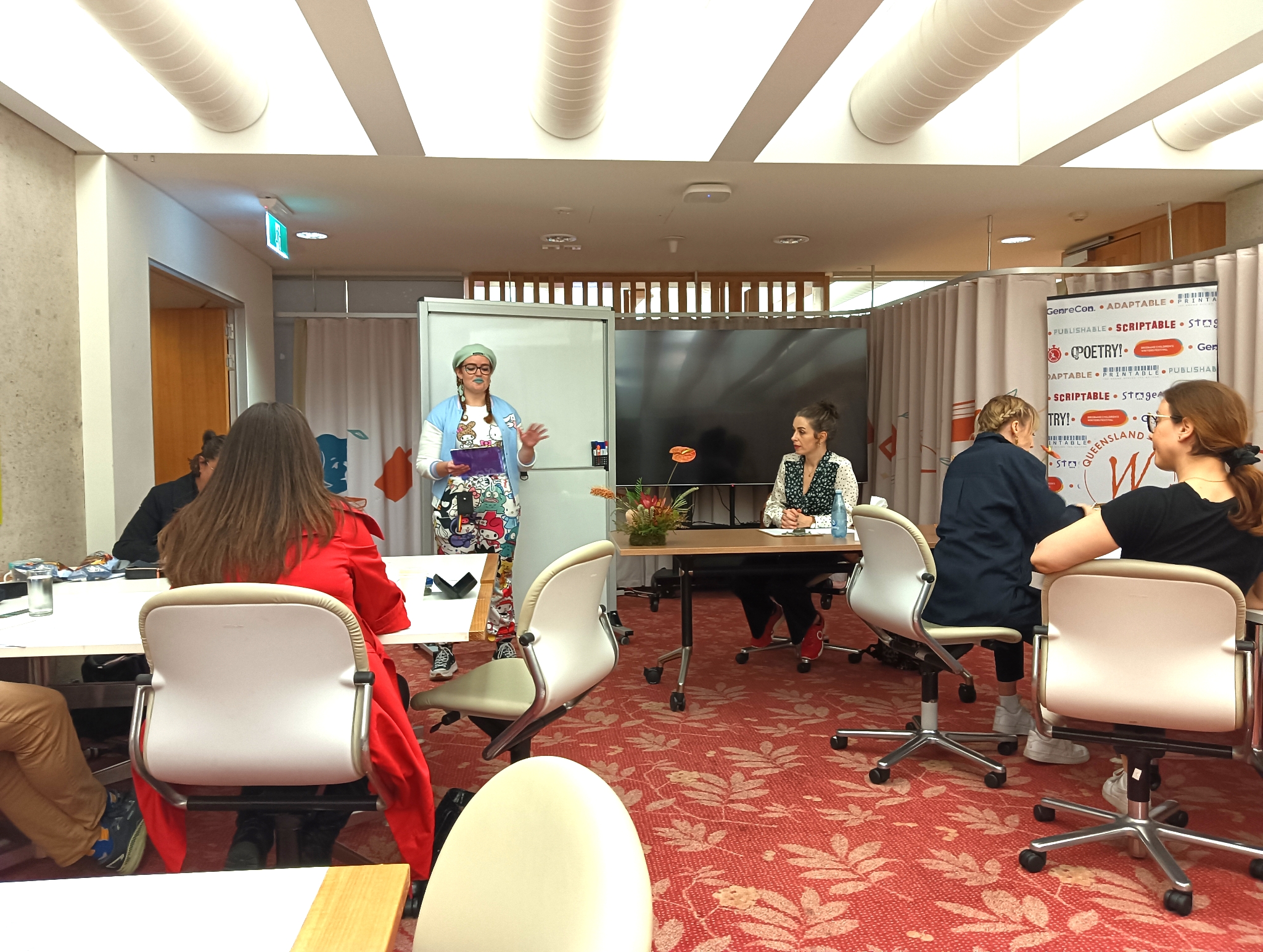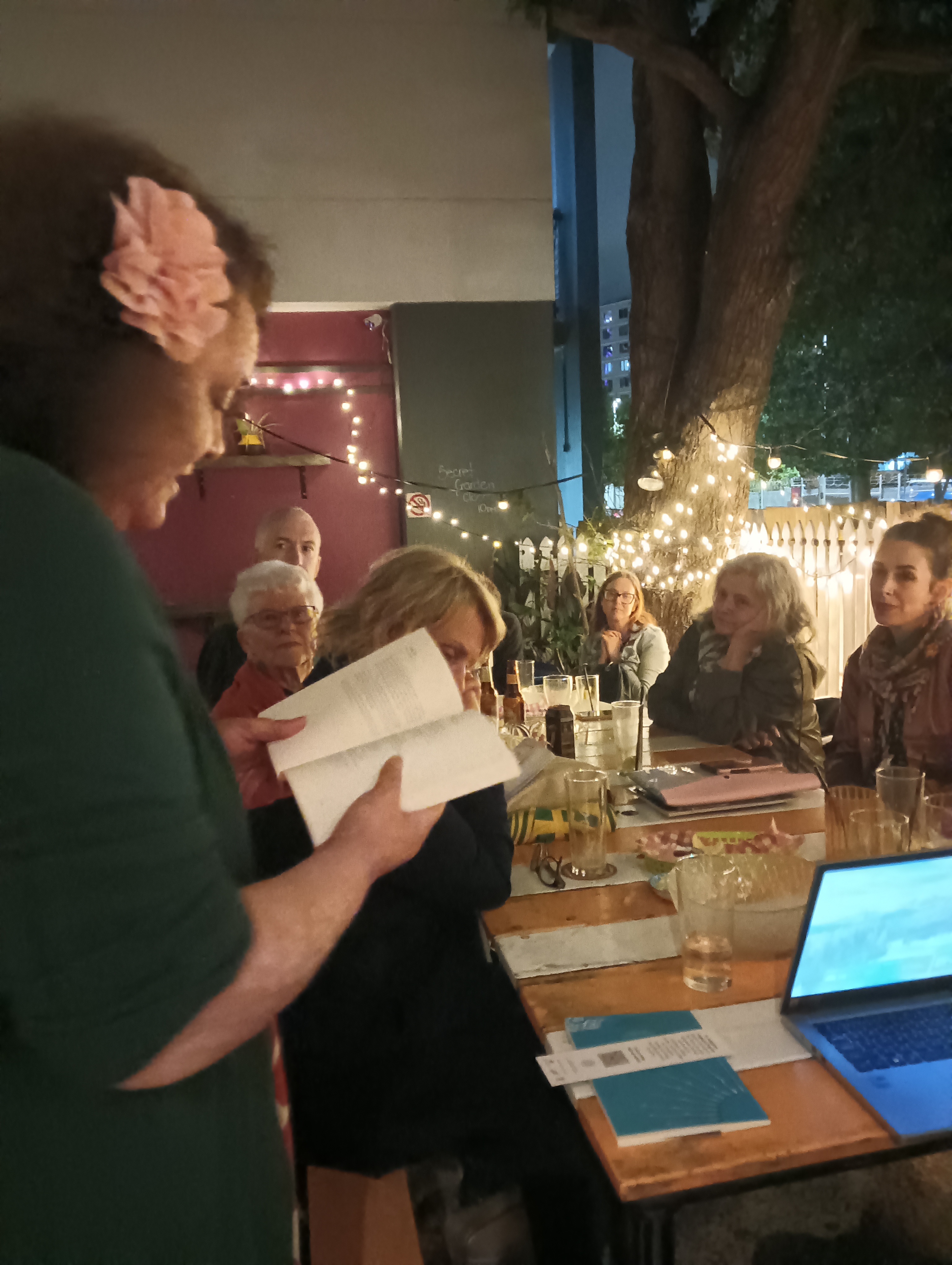 Thanks to the Queensland Writers Centre, Arts Queensland and anyone responsible for bringing Victoria out here to encourage local poets, especially Victoria for enduring a long plane ride to make it here.